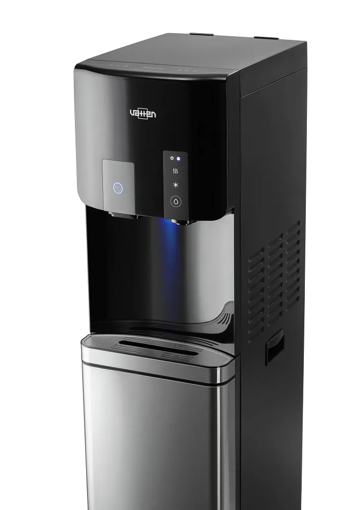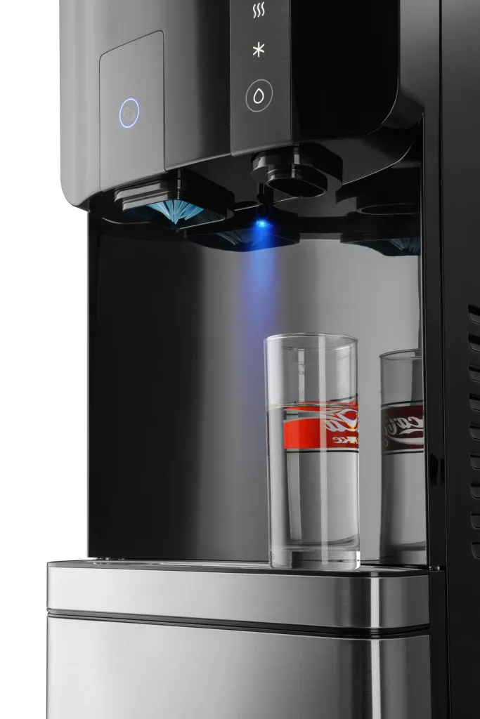 Эта отдельно стоящая машина не только стильная, но также мощная и долговечная. Кулер может быстро приготовить 4 л горячей воды и 3 л ледяной воды в час. Аппарат оснащен сенсорным управлением для подачи холодной и горячей воды, а также подачи льда в ваш бокал. Для предотвращения случайных ожогов, на дозаторе горячей воды предусмотрен защитный замок для детей, а функция подсветки зоны раздачи воды обеспечивает видимость в самых темных условиях.