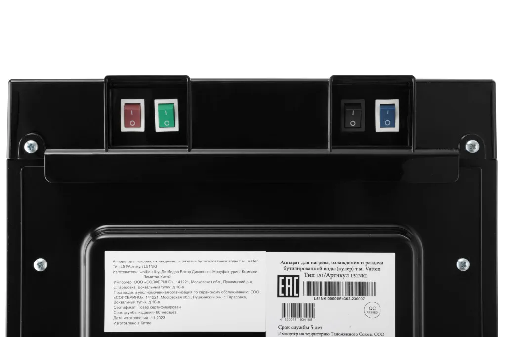 Кулер исполнен по схеме с удобной нижней загрузкой бутыли. Приобретение такого кулера избавит вашу спину от напряжения при замене бутыли, поскольку нижний загрузочный отсек позволяет произвести замену бутыли не отрывая её от пола. Благодаря удобству использования и безупречному дизайну кулер VATTEN L51NKI это отличное дополнение к любому помещению.