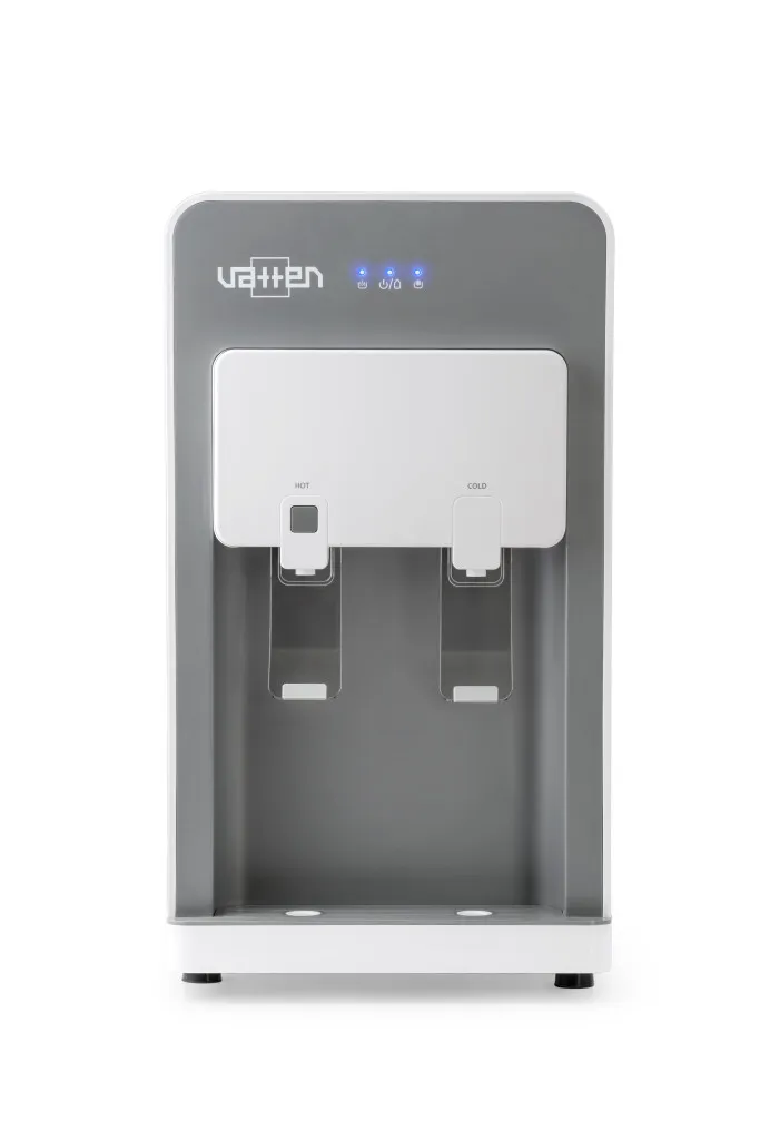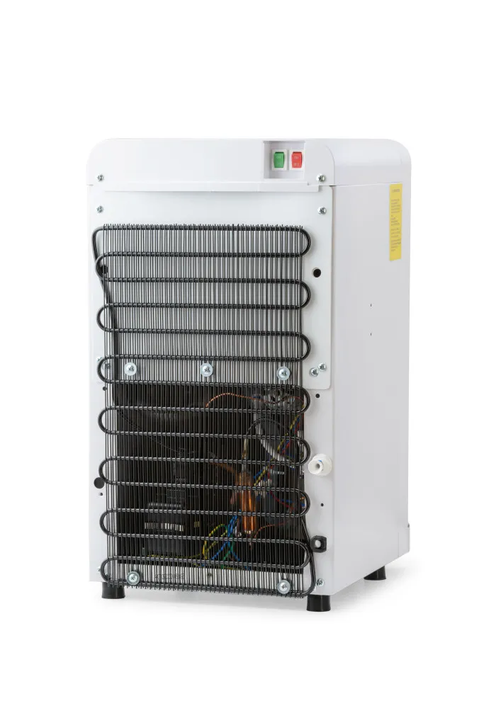 Компрессорное охлаждение. Изысканный дизайн в белом и сером цвете. Благодаря компактным размерам кулер можно встроить в любую кухонную мебель.