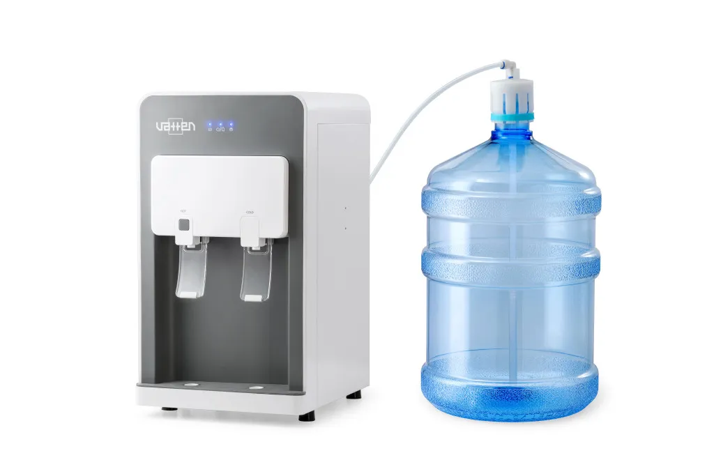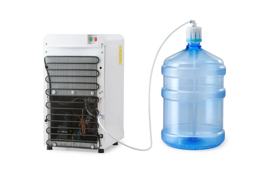 Бутыль может располагаться на расстоянии нескольких метров от места установки кулера, и быть спрятанной в какой-нибудь тумбочке или шкафчике на кухне. В комплекте идет трубка длиной 5 метров.