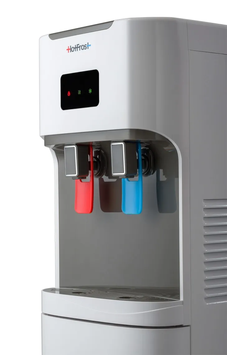 В кулере используется термоэлектрический тип охлаждения. Более высокая мощность нагрева делает этот аппарат гораздо производительнее, ведь он способен нагревать до 5.5 литров воды в час.