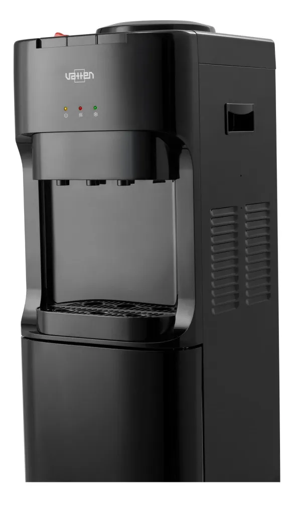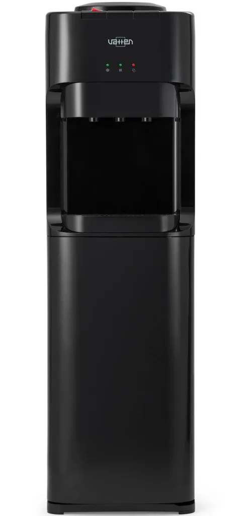 Напольный кулер для воды без шкафчика, без холодильника. Кулер для дома и офиса. Электронное охлаждение (0,6л/ч) + нагрев воды (6л/ч). Цвет черный. Три крана с кнопками. Подходит для домашнего и офисного использования, на предприятиях и учреждениях.